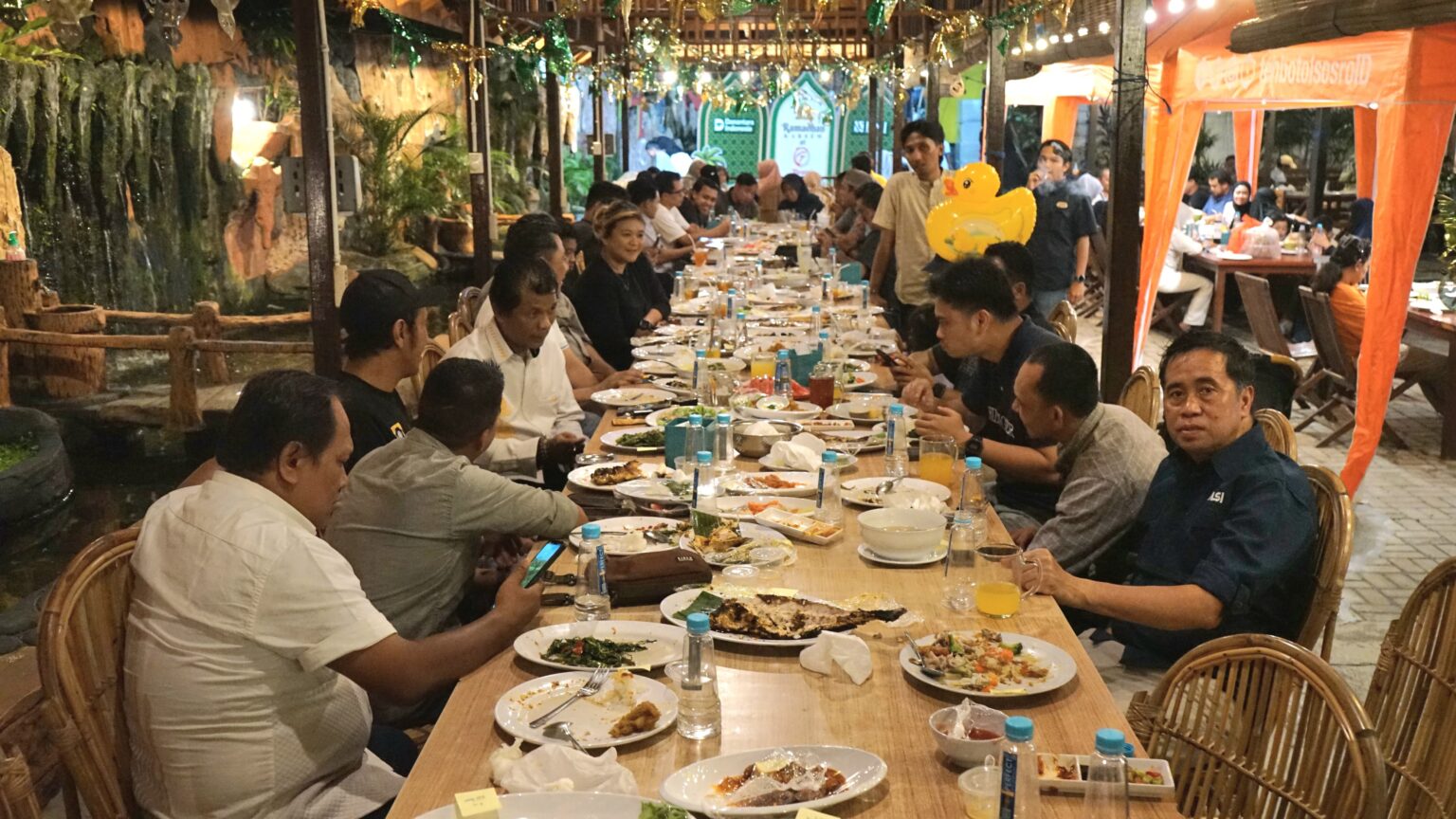 Selain berbuka puasa bersama, kegiatan juga diisi dengan perbincangan santai, pembagian bingkisan kepada peserta, serta sesi foto bersama sebagai simbol kebersamaan.